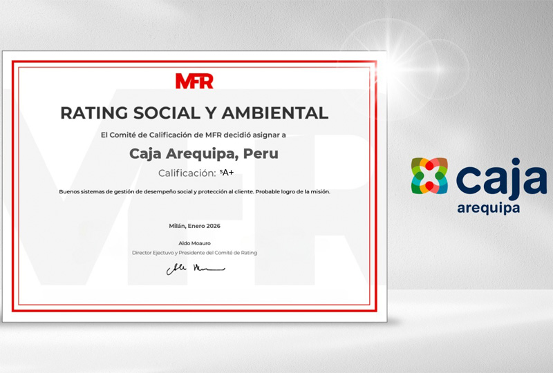 En esta evaluación, MFR destacó especialmente la transparencia institucional de Caja Arequipa, la protección al cliente y la calidad de la oferta financiera dirigida a los emprendedores y a sus familias.