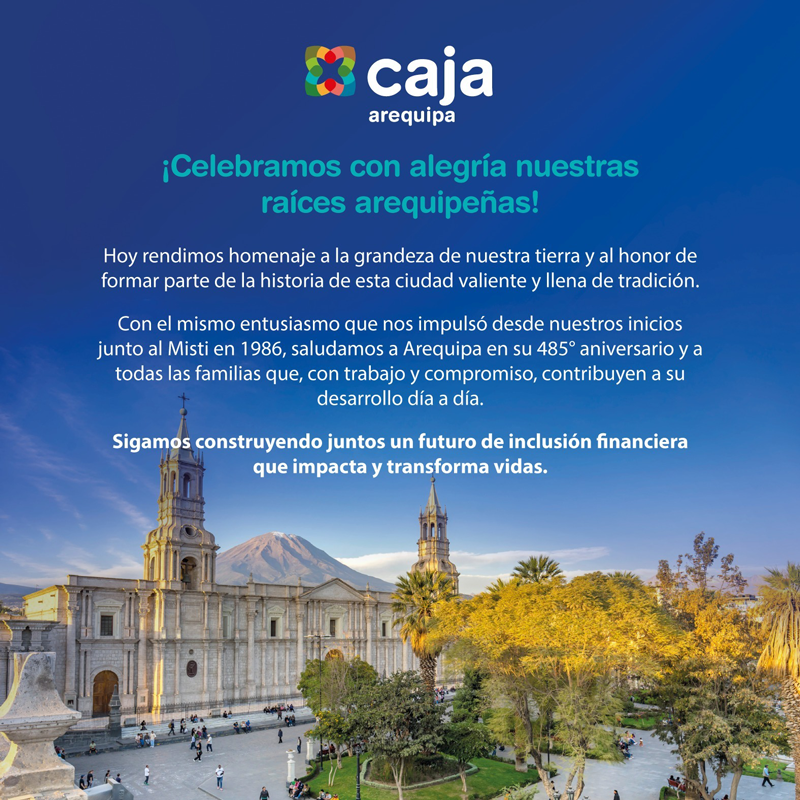 Fundada en 1986 al pie del majestuoso Misti, Caja Arequipa expresa con orgullo su identidad arequipeña y su compromiso con el desarrollo de miles de familias a lo largo del país.