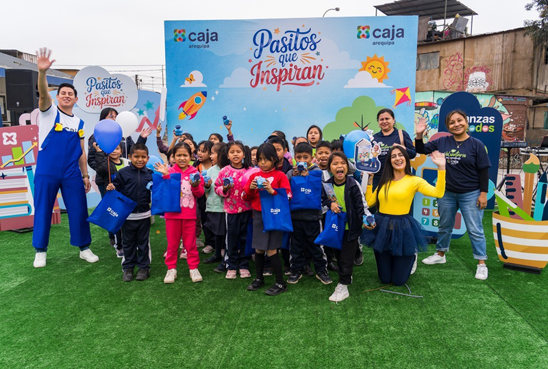 Durante el mes de agosto, el Mes del Niño, Caja Arequipa realizará acciones de campaña en el marco del proyecto “Pasitos que Inspiran”, llevando educación financiera a niños y adolescentes en diferentes regiones del país, incluyendo la Institución Educativa N.° 40206 Milagros en Jacobo Hunter (Arequipa). También se distribuirán 9,000 ejemplares del cuento “La hormiga María, ahorra con mucha alegría” para así impactar a más de 15,000 niños y sus familias.