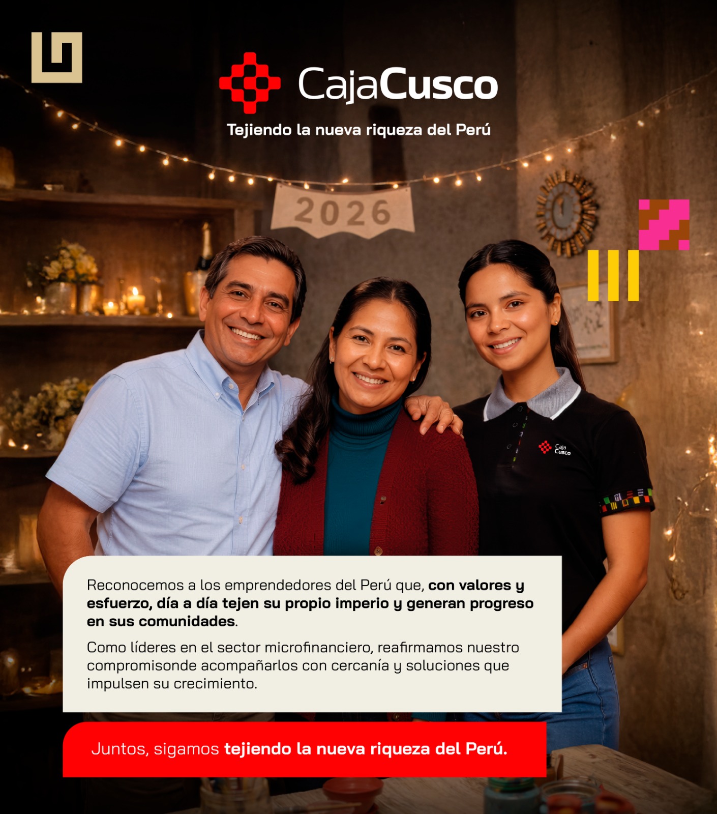 “La campaña Vamos pa’arriba Perú está inspirada en la fortaleza y ganas de siempre salir adelante que tenemos todos los peruanos, a pesar de las adversidades que se presenten en el camino”, refirió el Presidente de Directorio de Caja Ica, Mons. Edmundo Hernández Aparcana, quien además agregó que “complementando la fortaleza y tenacidad del emprendedor, el enfoque de la campaña busca reflejar el orgullo que tenemos los peruanos por las riquezas de nuestra flora y fauna de las 3 regiones del país (costa, sierra y selva)”.