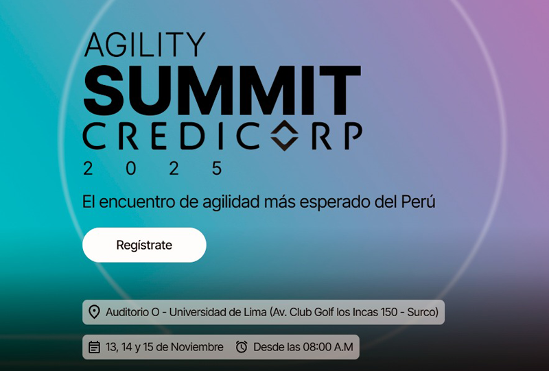 Los interesados pueden inscribirse hasta el 31 de octubre a través de la página oficial del evento: www.agilitysummitcredicorp.com.pe. Una vez completado el registro, recibirán su entrada digital.