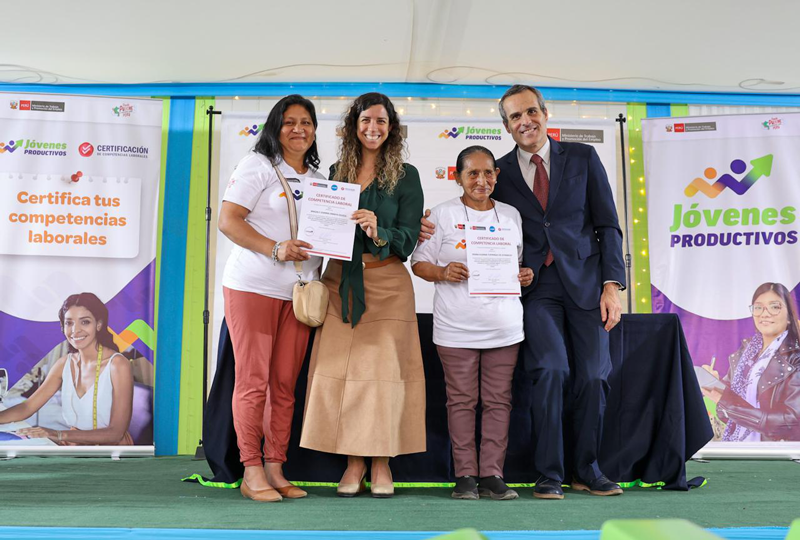 - El Programa Nacional de Empleo Jóvenes Productivos del MTPE lideró este proceso y trabajó en conjunto con el Centro de Certificación de Competencias Laborales CESAL, mismo que certificó a las más de 100 beneficiarias